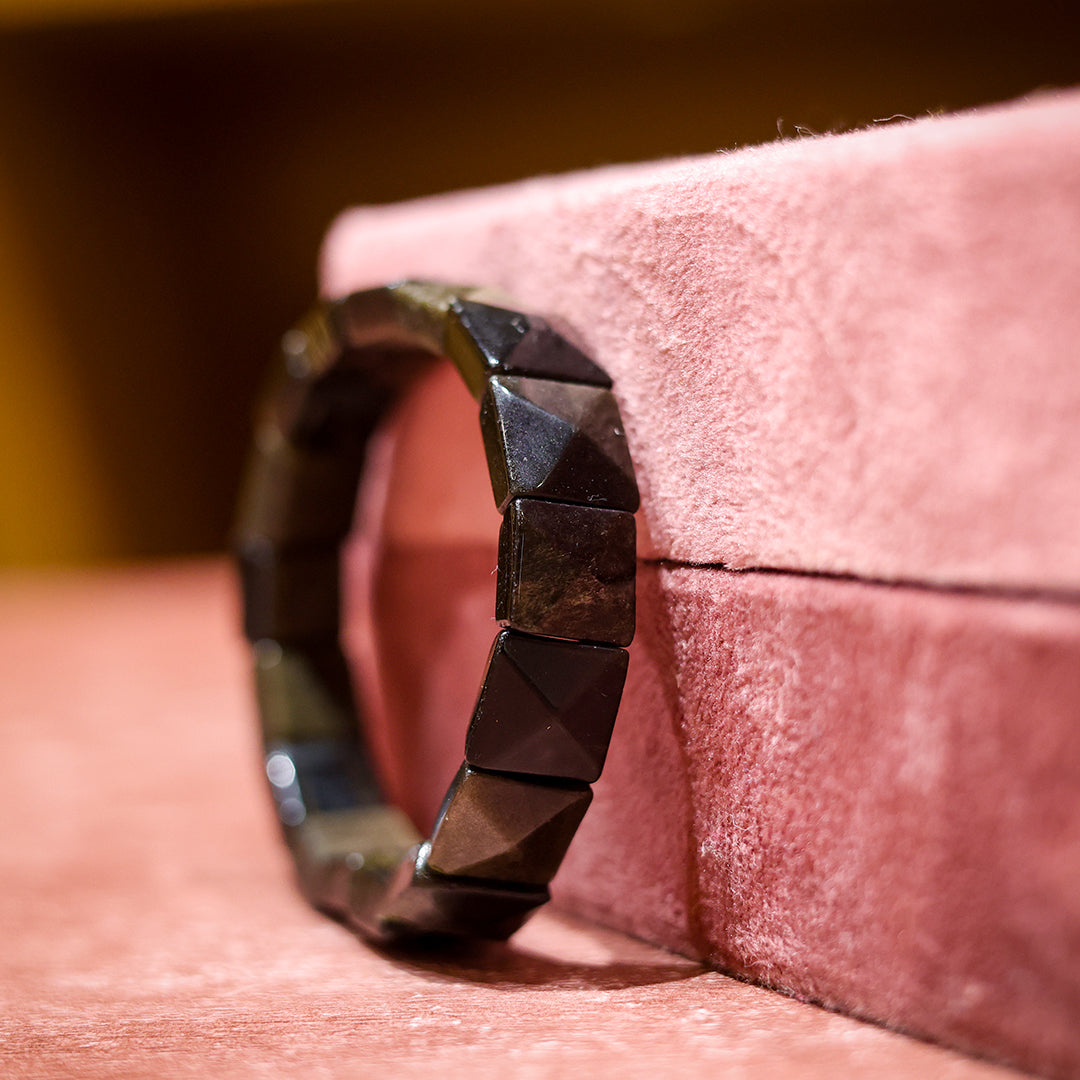 This elegant bracelet is made with natural Hematite beads, crafted in a square pyramid shape. Known as a stone of grounding and protection, Hematite promotes focus, balance, and stability while helping absorb negative energies and boost personal strength.