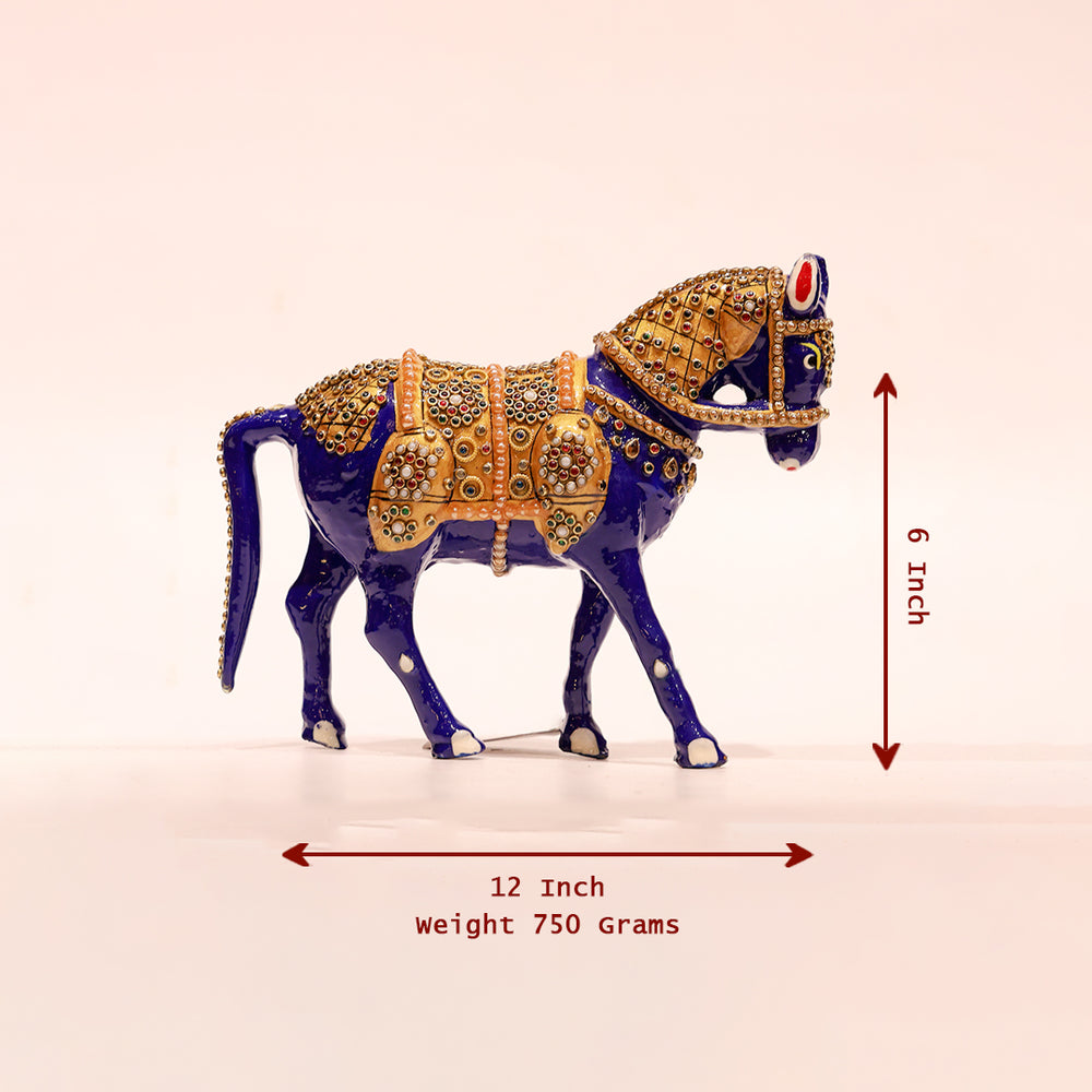 Handicrafts Showpiece of Standing Horse – 6 Inch | Symbol of Speed, Travel & Desire | Metal with Minakari Work