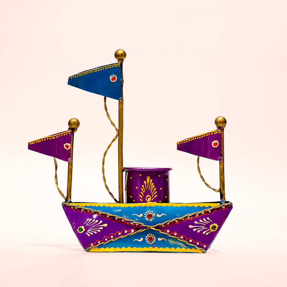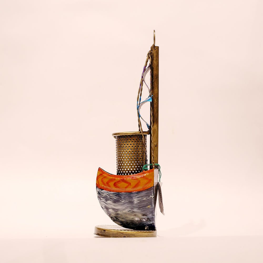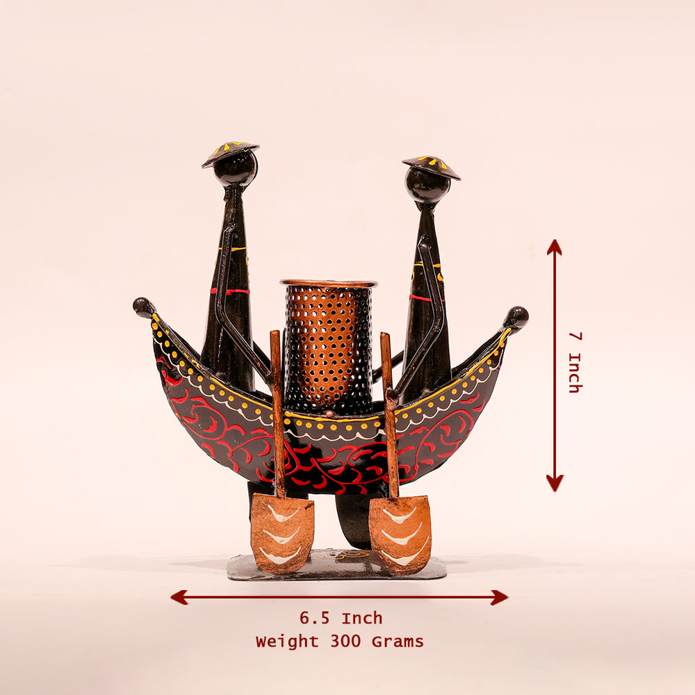 Handcrafted Metal Boat Pen Stand