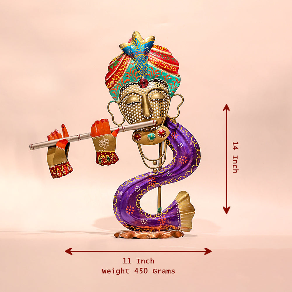Metal Krishna with Flute – Elegant Spiritual Décor