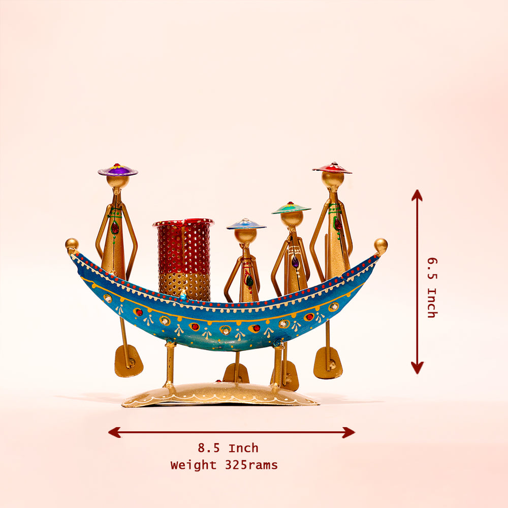 Handcrafted Metal Boat Pen Holder – Artistic Rowers Décor