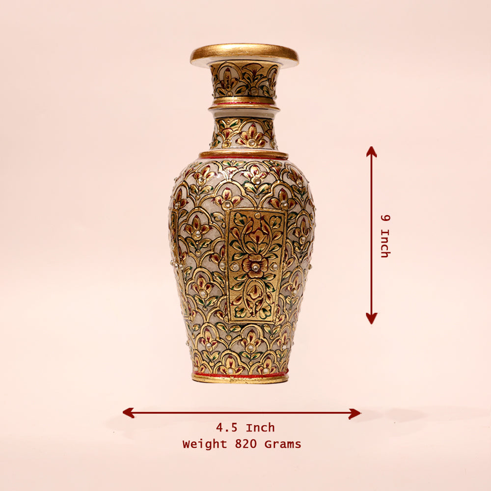 Decorative Embossed Marble Vase – 9 Inch | Intricate Floral Design for Home Décor