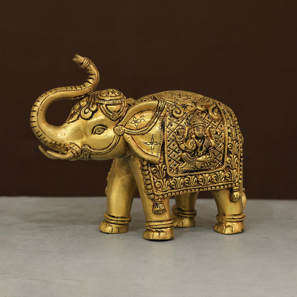 9" Brass Elephant with Lakshmi Statue