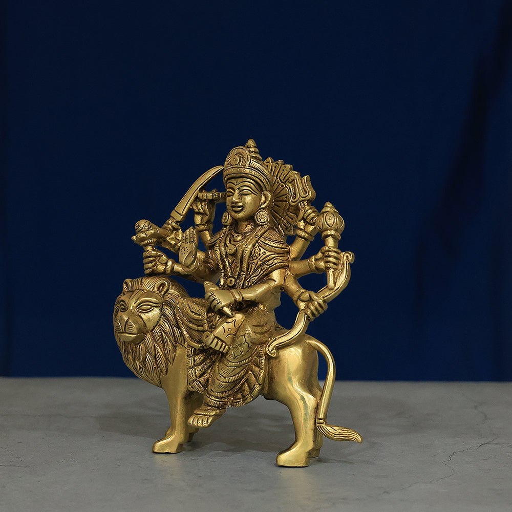 7" Brass Durga Statue – Symbol of Strength and Divinity