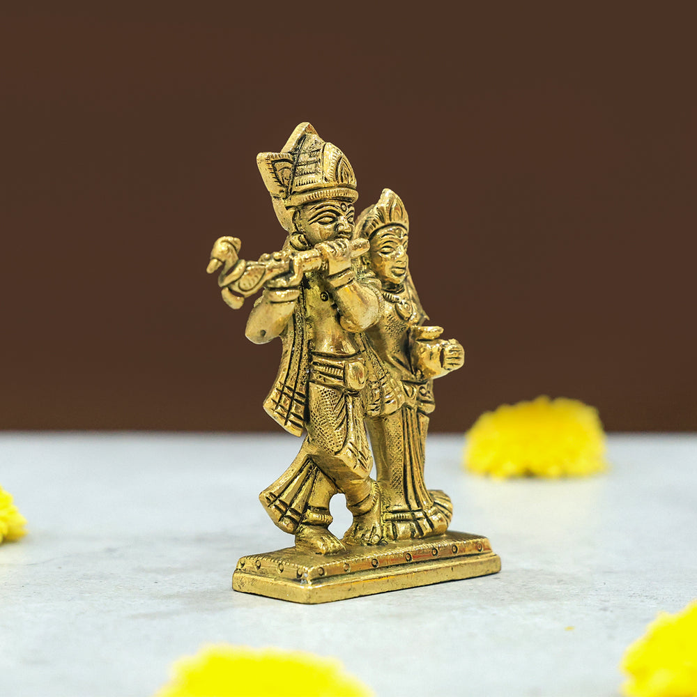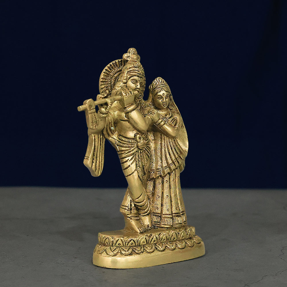 6" Brass Radha Krishna Statue – Symbol of Love and Devotion
