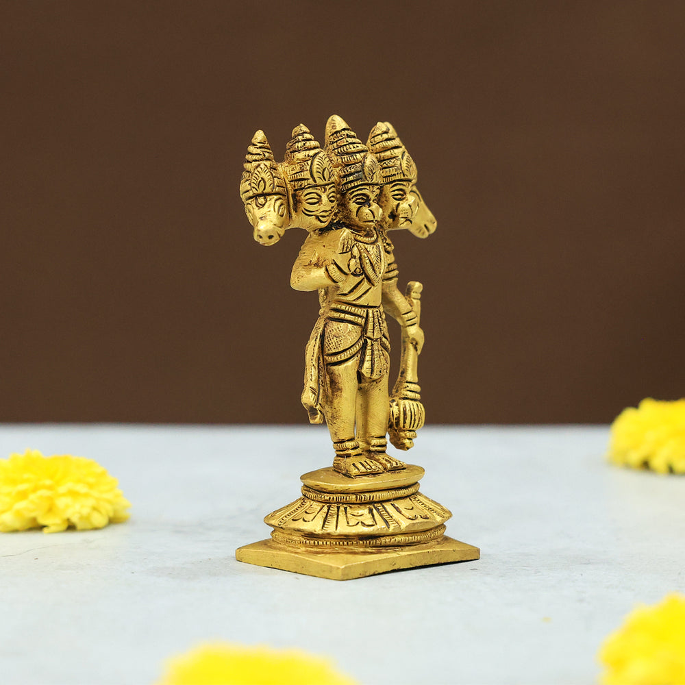4" Brass 5 Face Hanuman Idol
