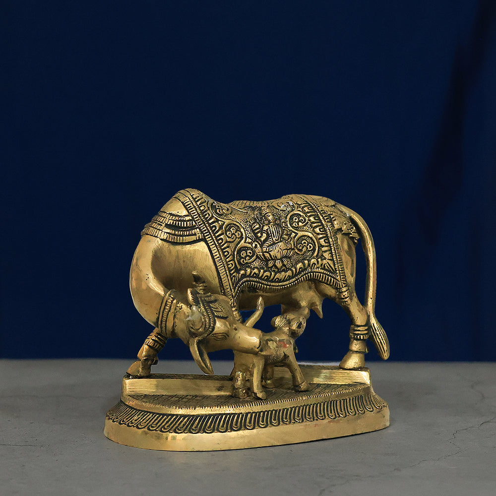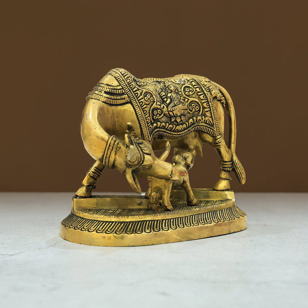 4.5” Brass Cow With Calf Idol-Gomatha