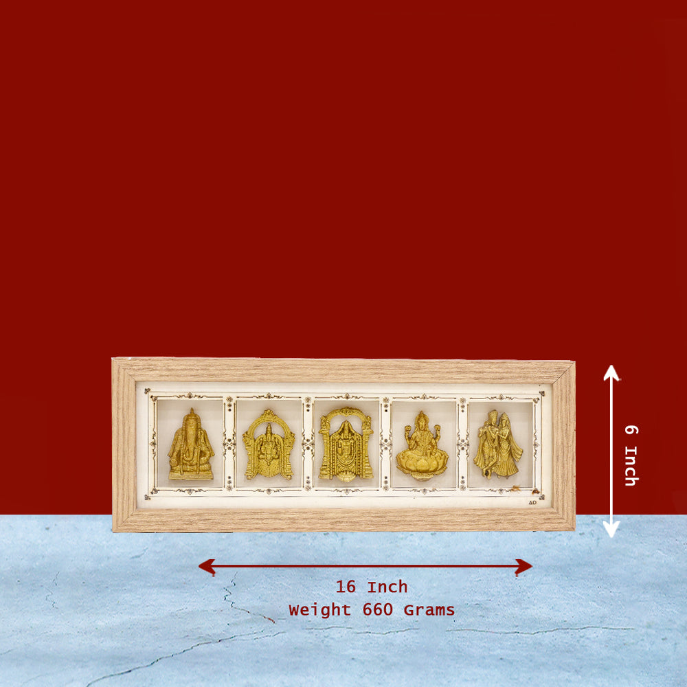 Multi-Deity Golden Relief Wooden Photo Frame – 6" x 16"