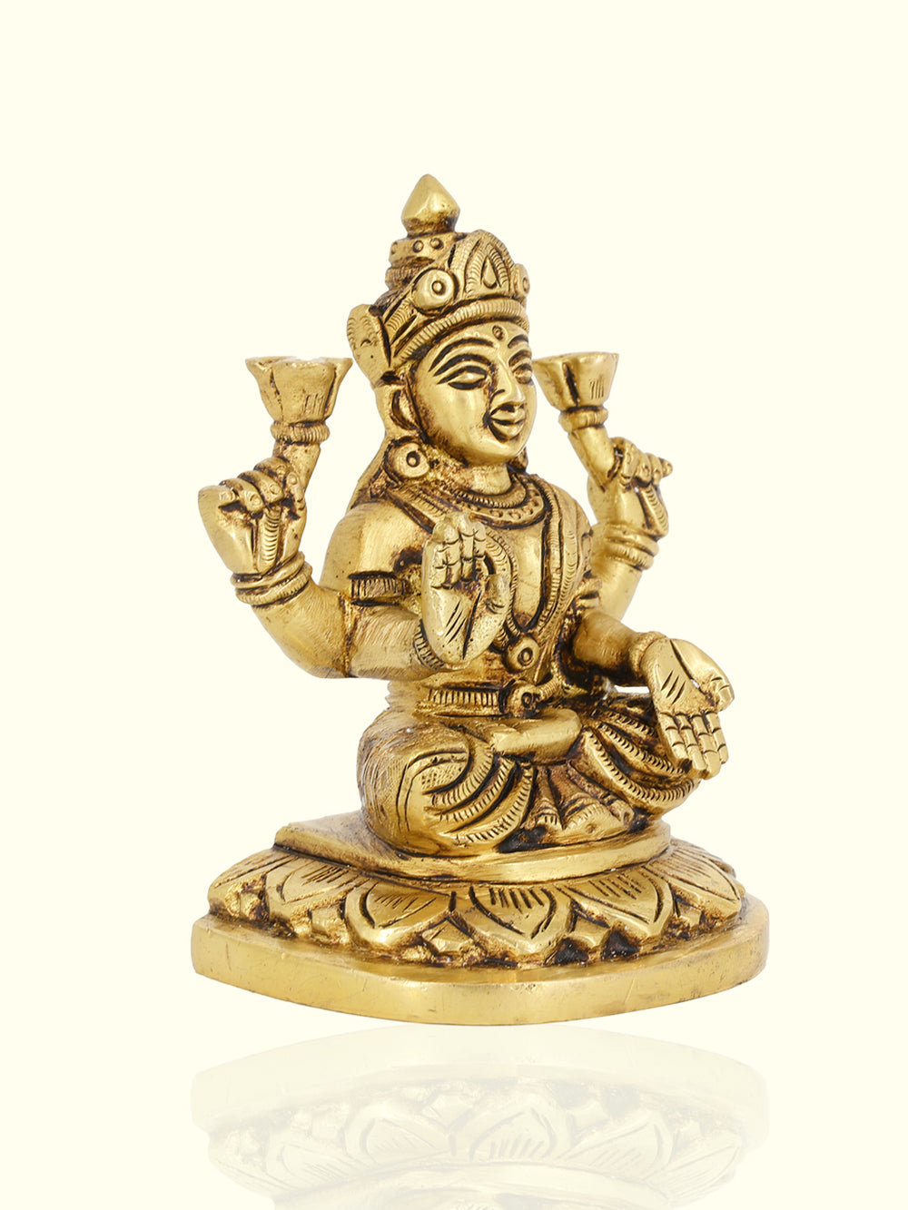 4" ఇత్తడి లోటస్ బేస్ లక్ష్మి